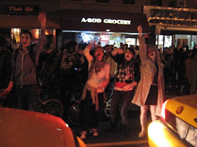 Last night we ate a full bag of smartfood popcorn waiting for the results. We blew the champagne cork into the ceiling at eleven. We had a phenomenal amount of jumping around in the street, high-fiving strangers driving past, screaming and crying and screaming and eventually singing the national anthem at the top of our lungs at one in the morning.