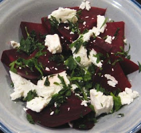 After all the warm comforting soporific thanksgiving food, I wanted refreshing, easy vegetables. I wanted a salad. Fortunately, there are a lot of salads around that work well for winter: hot egg salad with potato and green beans, grain salad vinaigrette, and beet salad.