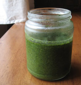 This batch tasted almost identical to our basil batch, probably in part because we pureed it in the same container. However, even without the basil, what you'll get is a beautiful greens and garlic slurry that is more or less interchangeable.