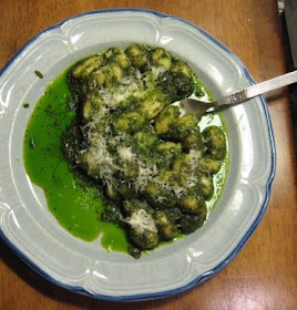 Now eat it! Toss with gnocchi or pasta, put a spoonful in your soup, spread it on a roasted red pepper sandwich. We clearly had gnocchi. Pesto gnocchi can stand either plain or with some grated cheese, but demands lots of crispy toast to mop up the extra sauce. It was the greatest.