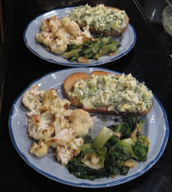 - Rice salad with roasted broccoflower and winter squash, red onion, toasted pecans, chopped chives and homemade vinaigrette.