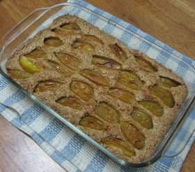 So the fact that I was considering making a cake at all was...different. It's not as though I couldn't have made a plum pie, or a tart. Hell, storebought puff pastry would've been just fine. But no: I wanted cake. Dense, damp, British teatimey cake. Plums sunk into thick wheaty batter sounded pretty good to me.