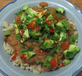 Instead, I cooked a cup of brown rice and a pan of refried beans, and then piled them in a bowl with half a chopped avocado, a handful of parsley (as there is currently no cilantro in the house either), and a dousing of hot sauce. Reasonable taco substitute achieved!