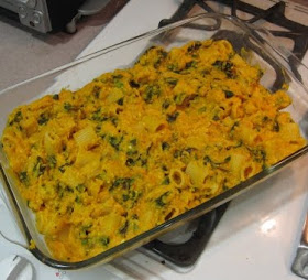 At this point, you could either eat the business as is or bake it for a crispy crust. I decided to bake mine, so I spread it in a casserole dish and put it in the oven at 375F. A top coating of bread crumbs or grated parmesan would not go amiss here.