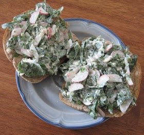 I just a variation of this with just Neuchfatel, arugula, salt and plain. It was really good! Tomorrow morning I'm going to have it for breakfast, and add cucumber slices to the top of the open-faced sandwich.